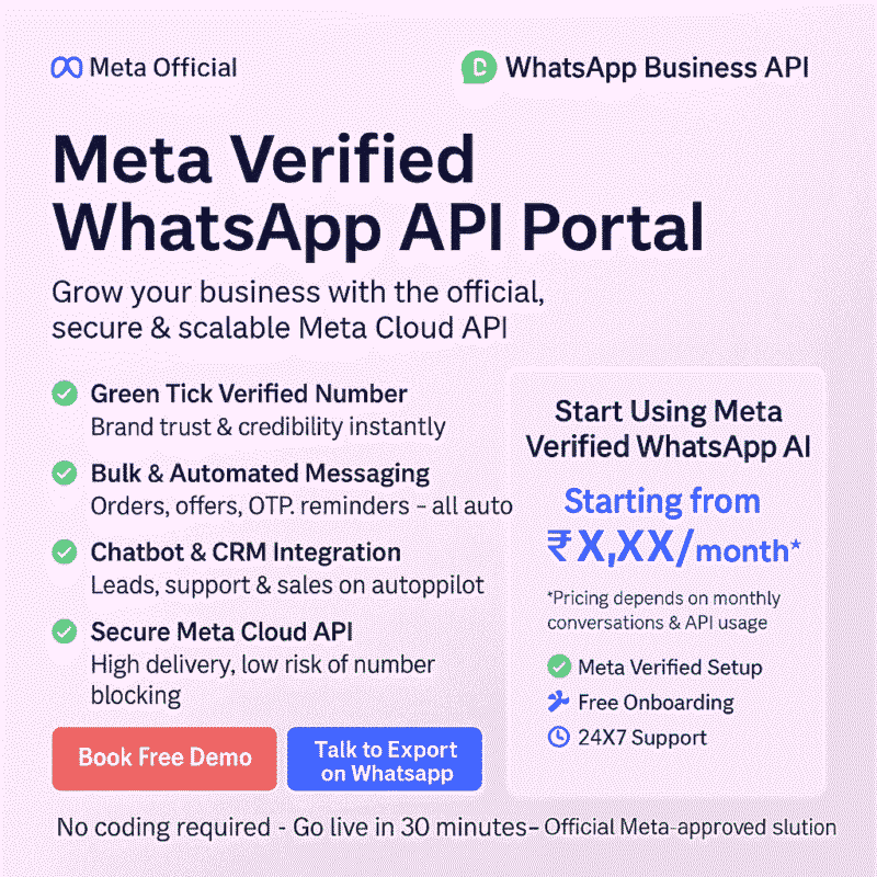 Grow your business on WhatsApp with an official, secure and easy-to-use Meta Verified WhatsApp API Portal.